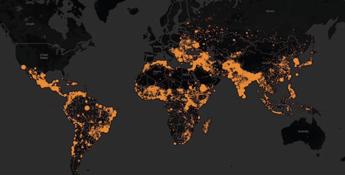図3. 世界の武力紛争の発生場所と発生状況のデータ。(図は著者提供) |
